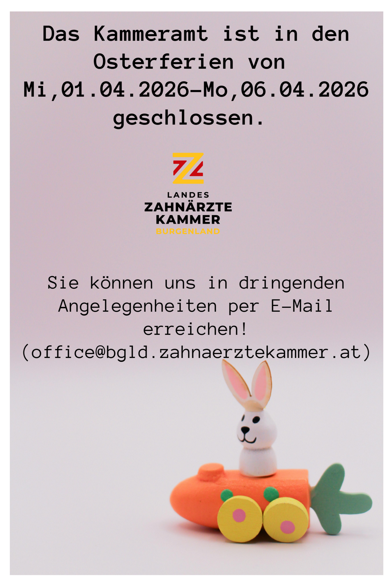 NOTDIENSTE finden am Ostersonntag (05.04.2026) sowie Ostermontag (06.04.2026) von jeweils 09:00-11:30 Uhr statt.